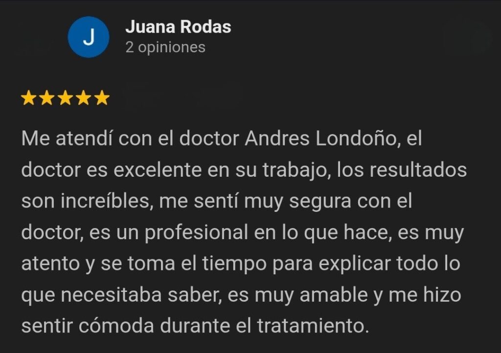 Más que resultados, buscamos transformar la manera en que nuestros pacientes se sienten consigo mismos. Sus historias y experiencias son el reflejo de nuestra pasión por brindar bienestar y confianza. Conoce los testimonios de quienes han vivido la experiencia con el Dr. Andrés Londoño.
